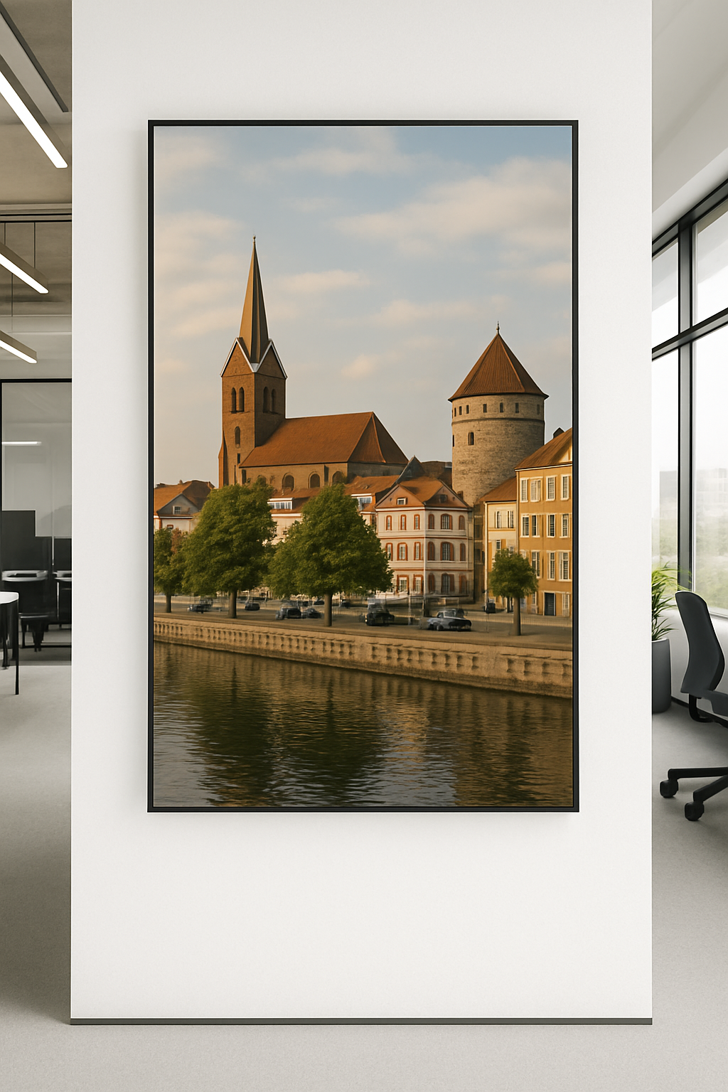 Rammerne kan monteres på både vægge, med fødder og til at hænge ned fra lofter og er ideelle i møderum, receptioner, gangarealer og åbne kontorlandskaber.